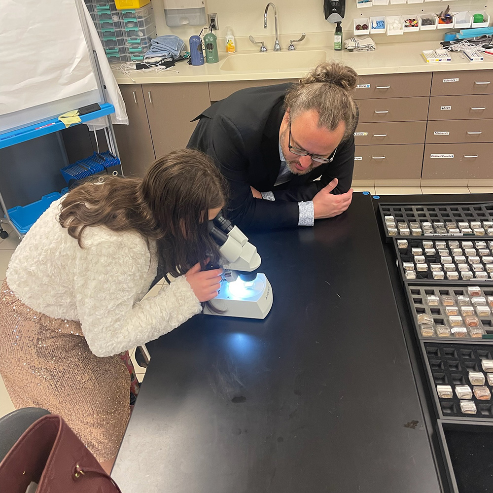 Thomas is a positive influence on his nieces by forcing them to get interested in microscopy and